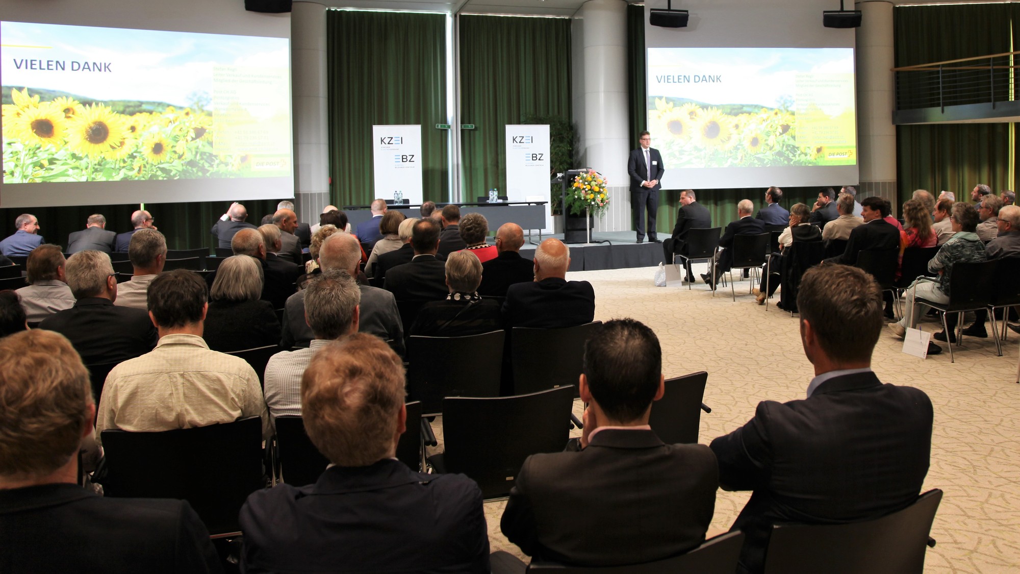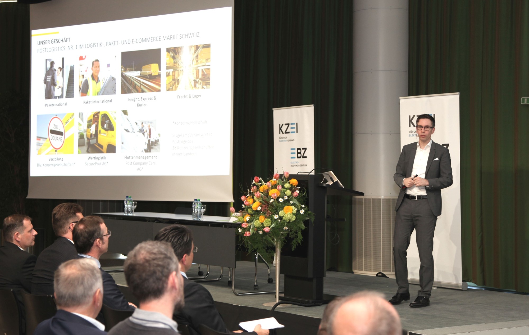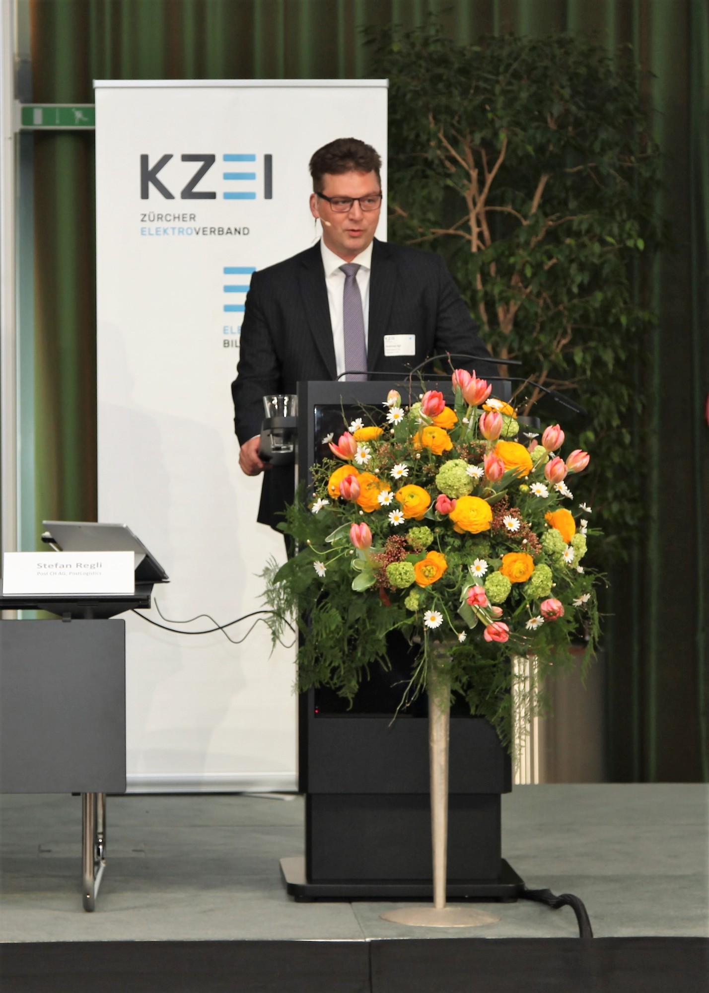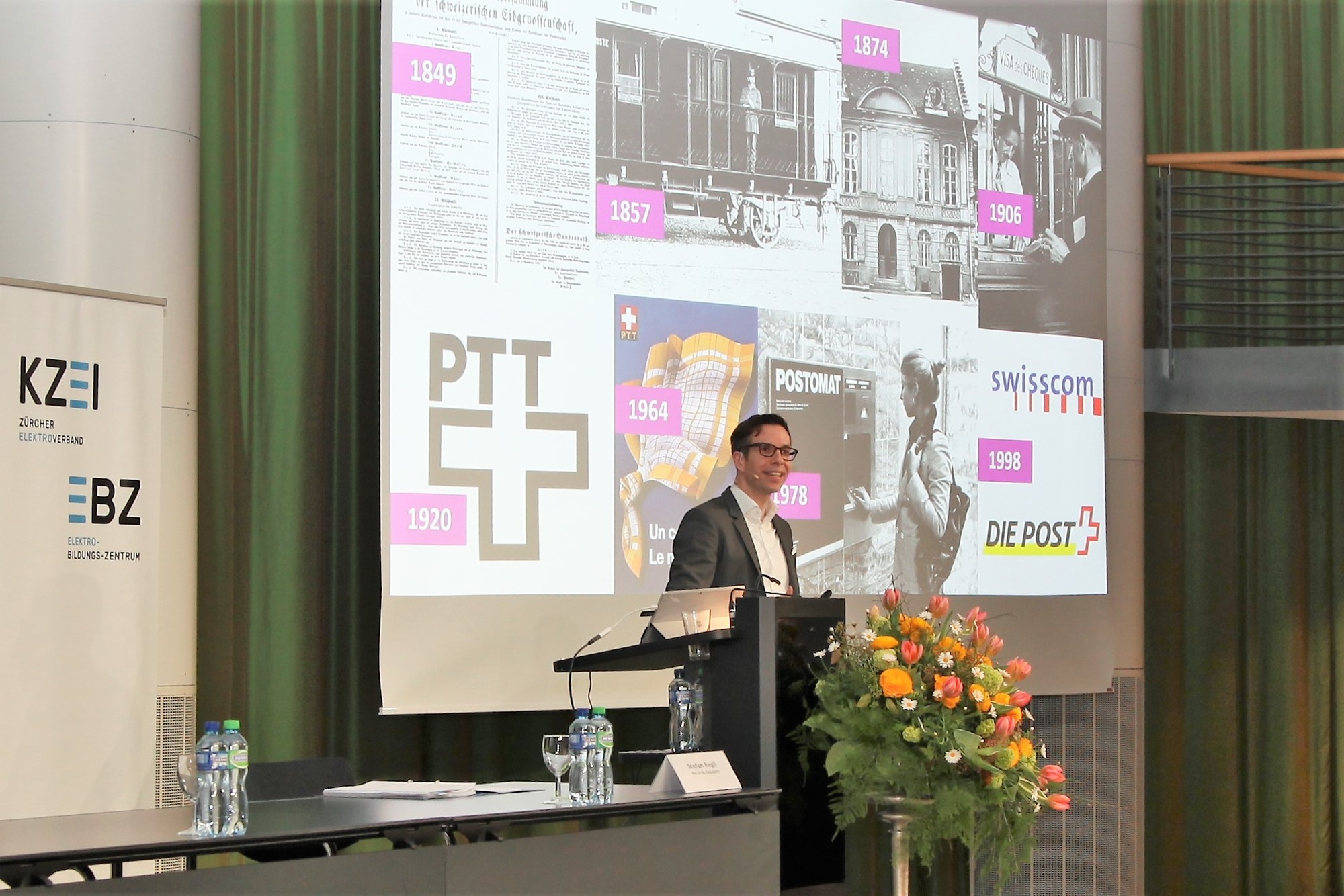 Präsident Andreas Egli begrüsste alle Gäste um 15.30 Uhr im Forum und stellte den Referenten Stefan Regli, Leiter Verkauf und Kundenservices und Mitglied der Geschäftsleitung, Post CH AG, PostLogistics vor. In seinem Referat ging er auf die Geschichte, die Vision und die verschiedenen Geschäftsfelder der Schweizerischen Post im Wandel der Zeit ein und stellte anschliessend im Detail die Sparte PostLogistics mit seinen unterschiedlichen Dienstleistungen und innovativen Wegen in der Digitalisierung vor. Die Welt der digitalen Innovationen bietet grosse Chancen und vielzählige Möglichkeiten. Auf dem langen Weg von der Idee über die Entwicklung und Implementierung ist jedoch auch eine grosse Portion Mut, Ausdauer und auch Risikobereitschaft gefragt. Stefan Regli zeigte gekonnt auf, wie die Schweizerische Post konstant neue Wege geht und sich die Chancen neuer Entwicklungen und Trends in den verschiedenen Geschäftsfeldern zu Nutze macht.
