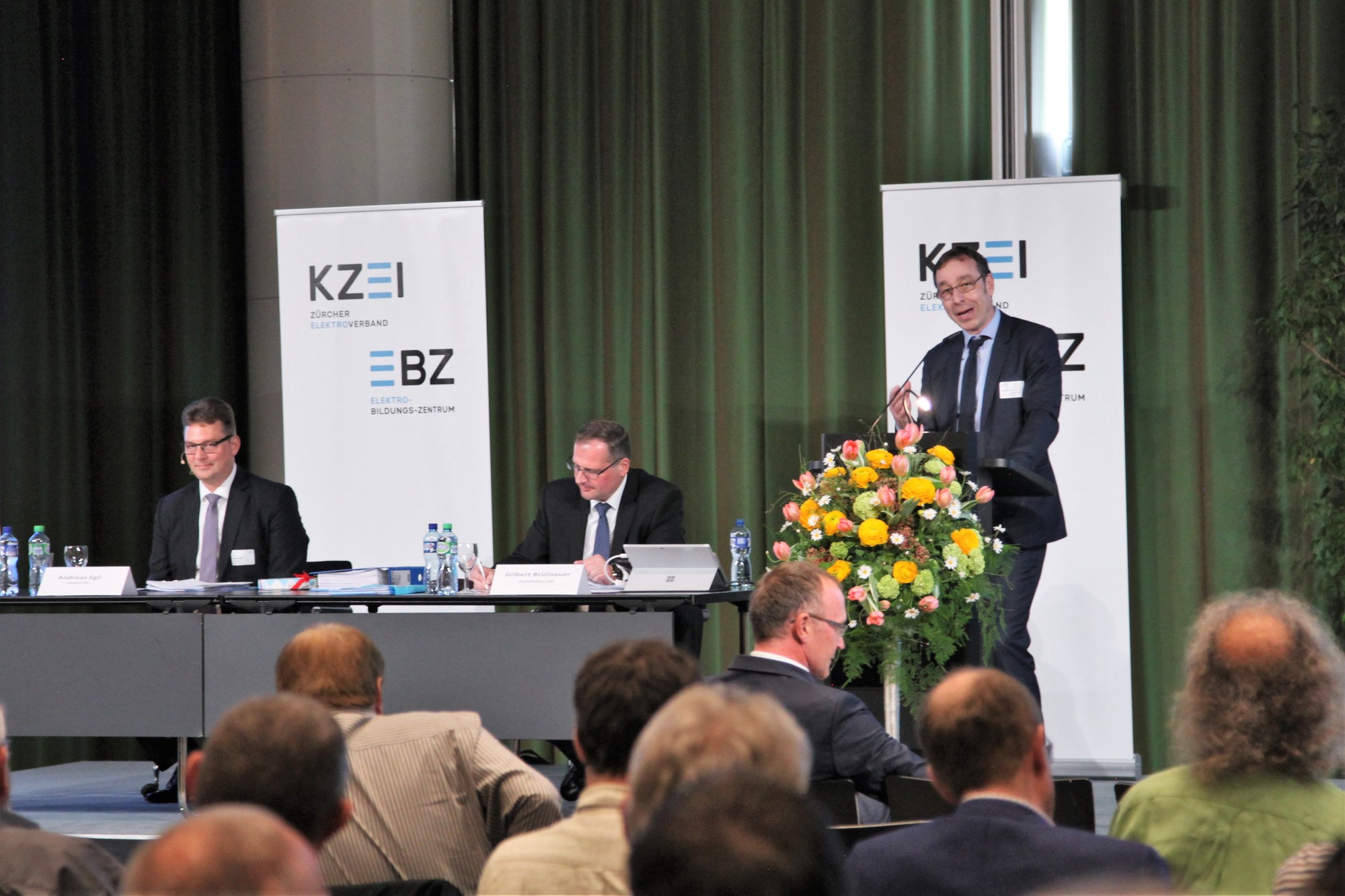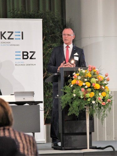 Nach einer kurzen Erfrischungspause fand der statutarische Teil der Generalversammlung statt. In der Präsidialansprache ging Andreas Egli zunächst auf die Resultate der Kantons- und Regierungsratswahlen im Kanton Zürich und die gewählten Kandidaten aus der Elektrobranche ein. Anschliessend führte er die Entwicklung der Berufsbildung näher aus. Der stete Wandel in der der Branche als auch in der Gesellschaft erfordert eine kontinuierliche Anpassung, sei es bei der Einbindung neuer zukünftiger Berufszweige wie z.B. die Lehre zum Gebäudeinformatiker, als auch bei der schulischen Ausbildung mit Diskussionen z.B. zu neuen Ausbildungswegen. Unter dem Titel «Gute Aus- und Weiterbildung braucht Raum», ging Andreas Egli nachfolgend im Detail auf den Erweiterungsbau des EBZ ein und zeigte anhand von Fotos den Baufortschritt sowie die laufenden Kosten und Kostenprognosen auf. Mit dankenden Worten an alle, welche sich für die Branche einsetzen, endete die Präsidialansprache. Hier finden Sie die vollständige Präsidialansprache zum Download.