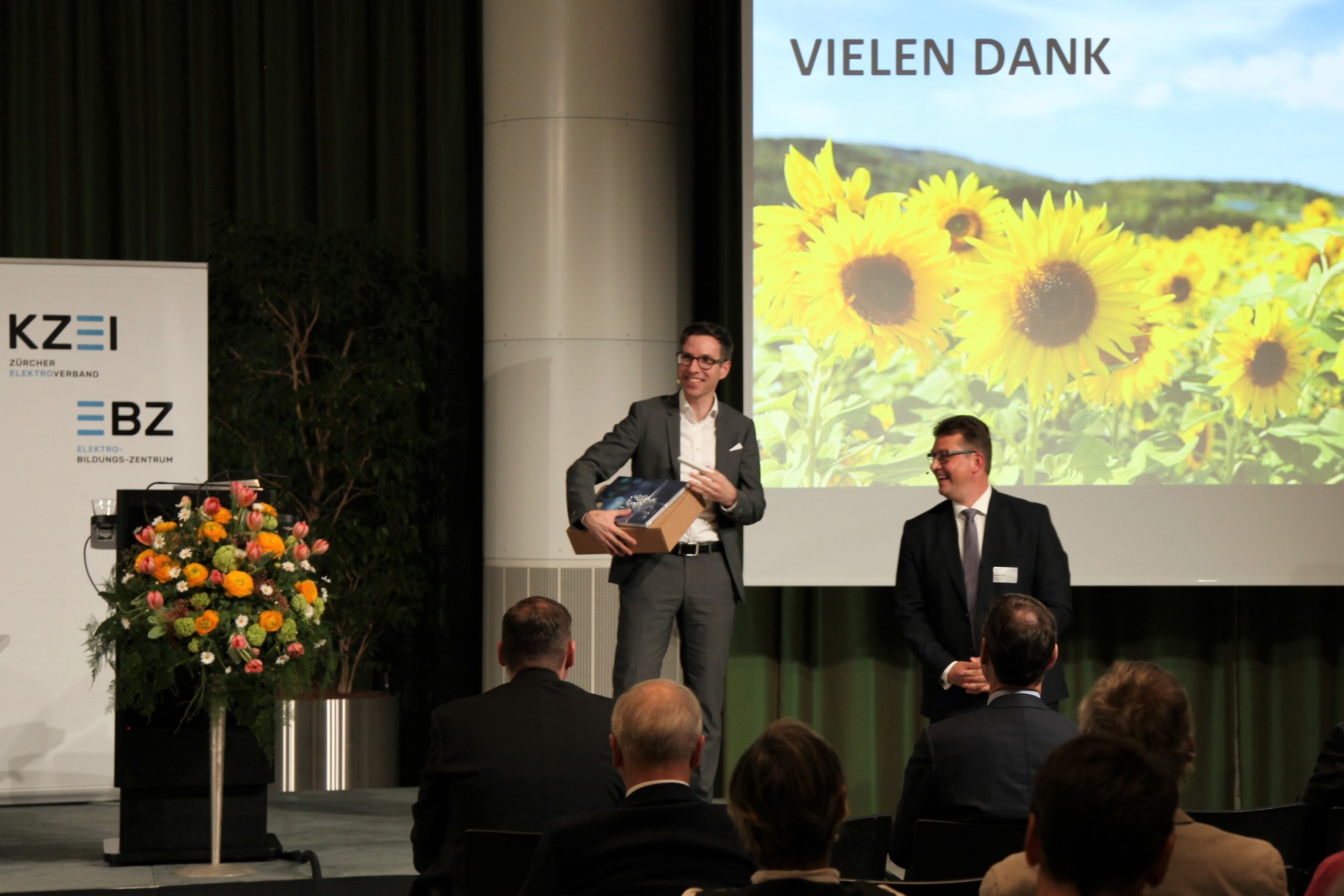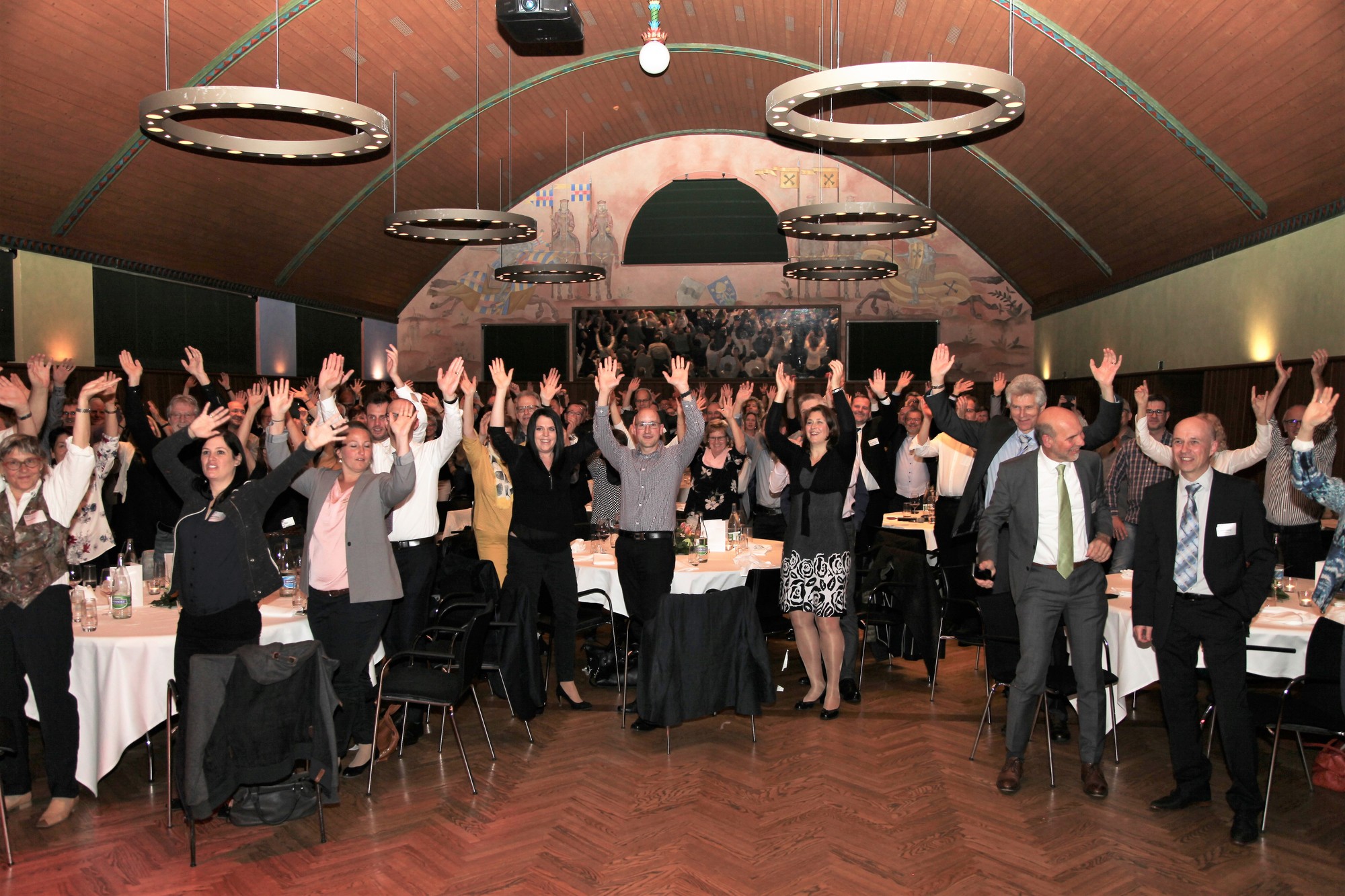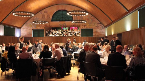 Beim Apéro im Foyer konnten sich die Teilnehmer austauschen und über die Neuigkeiten aus der Branche diskutieren. Gegen 19.15 Uhr wurden die Türen zur Reithalle geöffnet und die Gäste durch die Charly F. Band mit Sängerin Cécile Centeno empfangen. Nach dem Hauptgang folgte das Highlight des Abends mit dem Auftritt des bekannten Mundartsängers Florian Ast. Er feierte seine bekanntesten Songs zusammen mit dem Publikum und zeigte den Gästen mit einigen persönlichen Geschichten auch seine ganz private Seite. Im Anschluss wurden das Käse- und Dessertbuffet sowie der Barbetrieb eröffnet. Bei Musik, Tanz und interessanten Gesprächen klang der Anlass gemütlich aus.