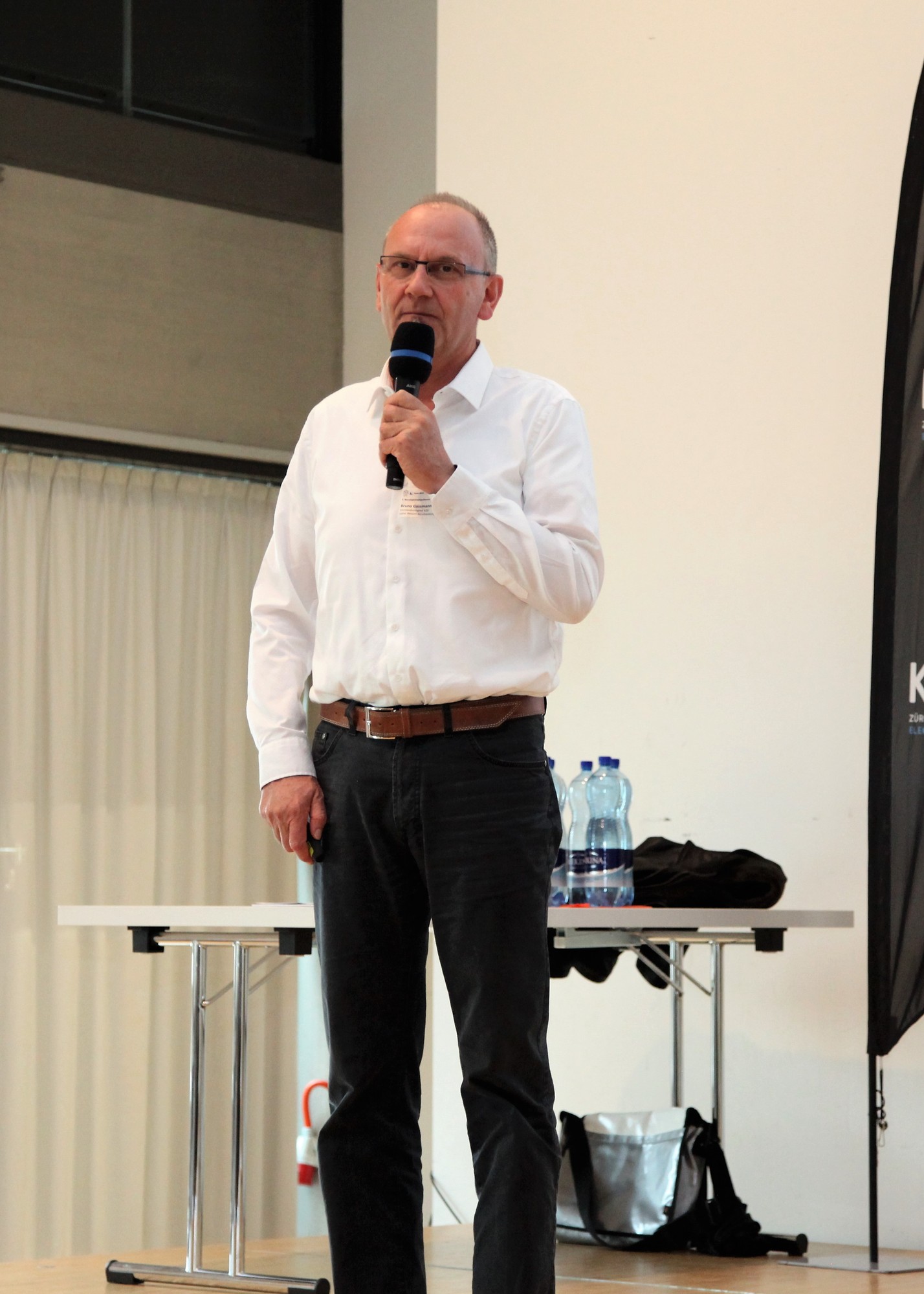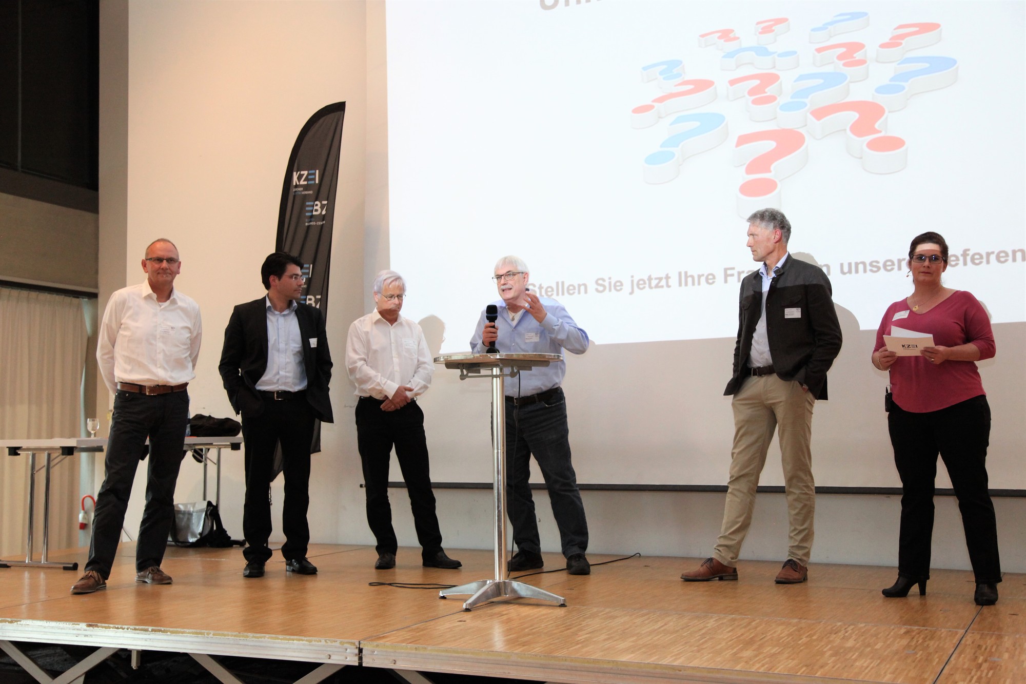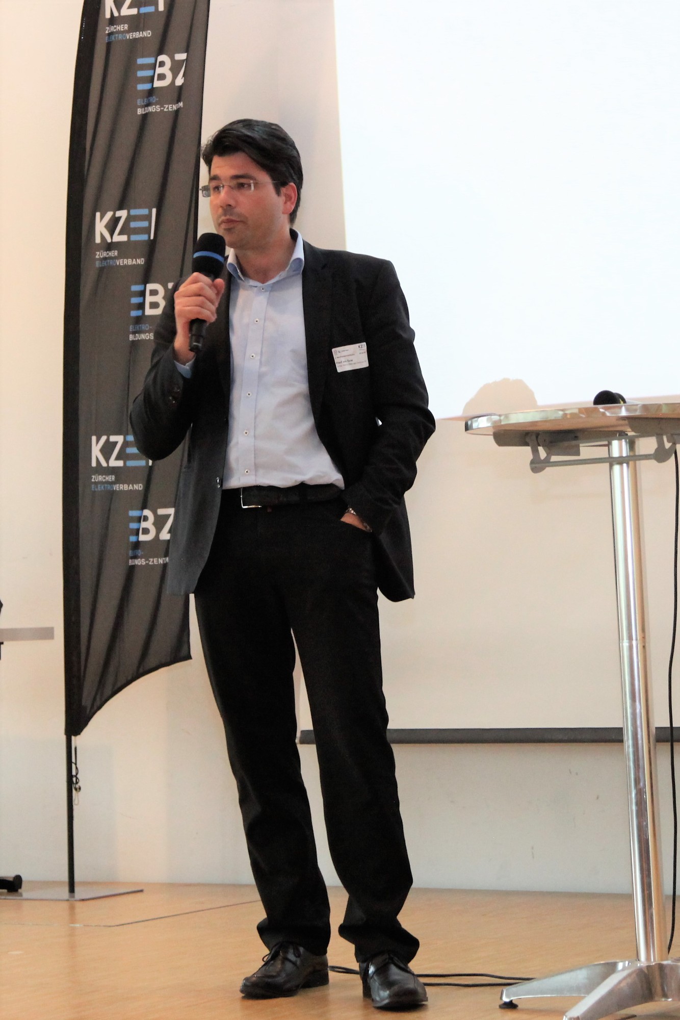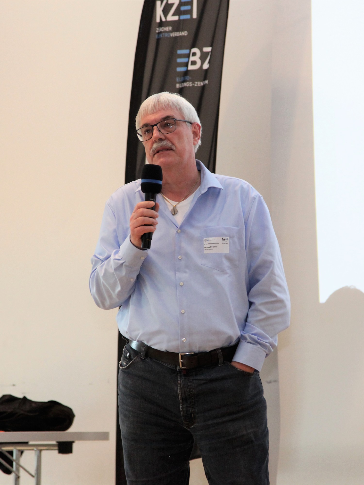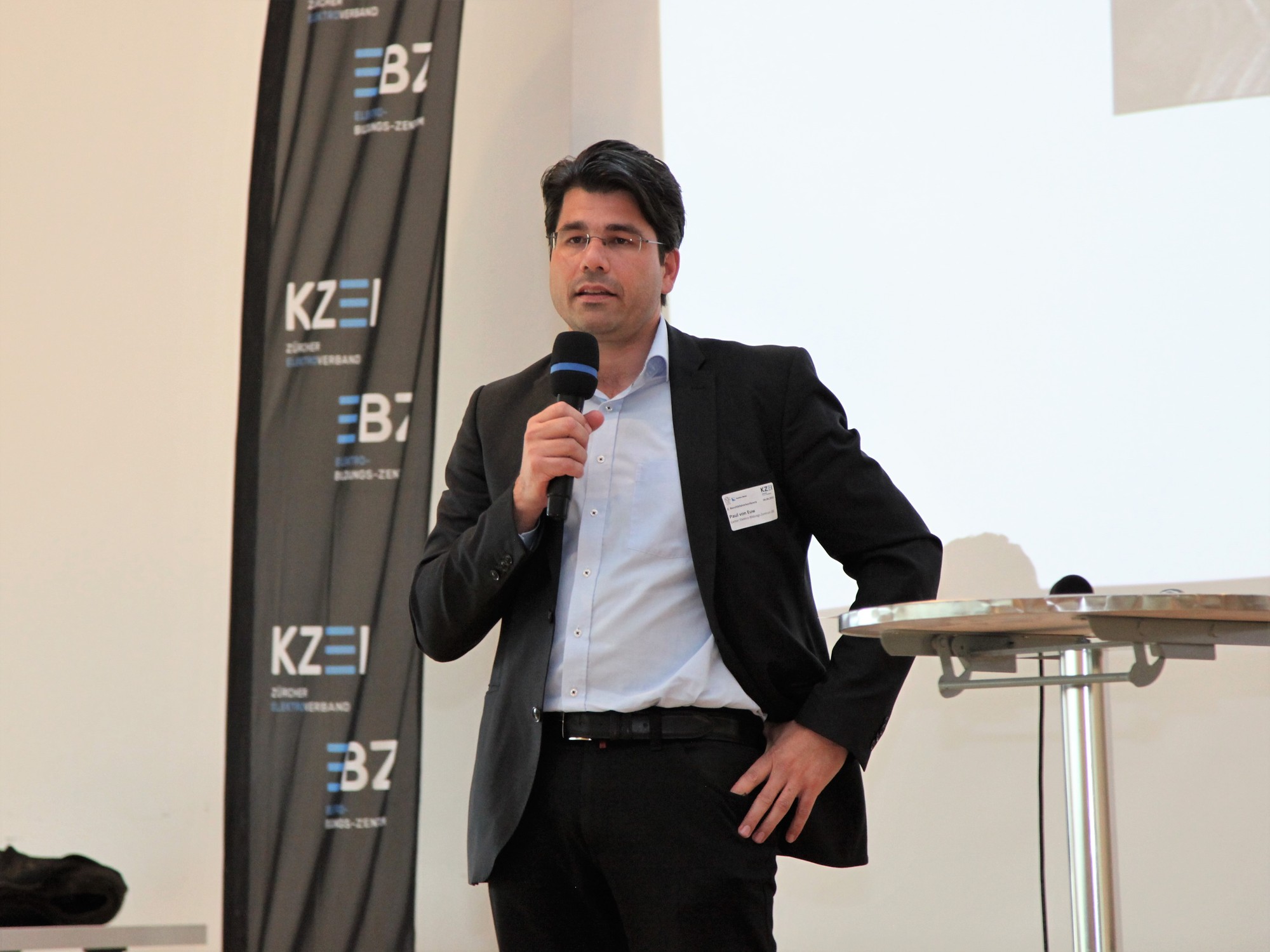 Paul von Euw, Leiter EBZ, stellte im ersten Teil der Konferenz den Start-up Kurs des Elektro-Bildungs-Zentrum EBZ, Effretikon näher vor. Im Anschluss thematisierten Edgar Frei, Vertreter Berufsfachschulen, und Bruno Gassmann auf die Berufsmaturität und Ihre Vorteile sowie die Branchenverzeichnisse ein. Marcel Furrer, üK Dozent EP, referierte zum Thema «Begleitung Ausbildung ElektroplanerInnen EFZ» und griff hierbei vor allem den Praktikumsnachweis auf, danach redete Paul von Euw über das Thema Absenzgesuche im üK. Zum Abschluss des ersten Teiles berichtete Daniel Gerber, Europameister der Elektroinstallateure 2018, in einer Videoeinspielung von seinen Erfahrungen und den Voraussetzungen für nationale und internationale Wettkämpfe. Anschliessend wurde Roger Ammann als Berufsbildner und Arbeitgeber von Daniel Gerber live zu seiner Sichtweise und den Herausforderungen als Arbeitgebers eines Europameisters auf der Bühne interviewt.