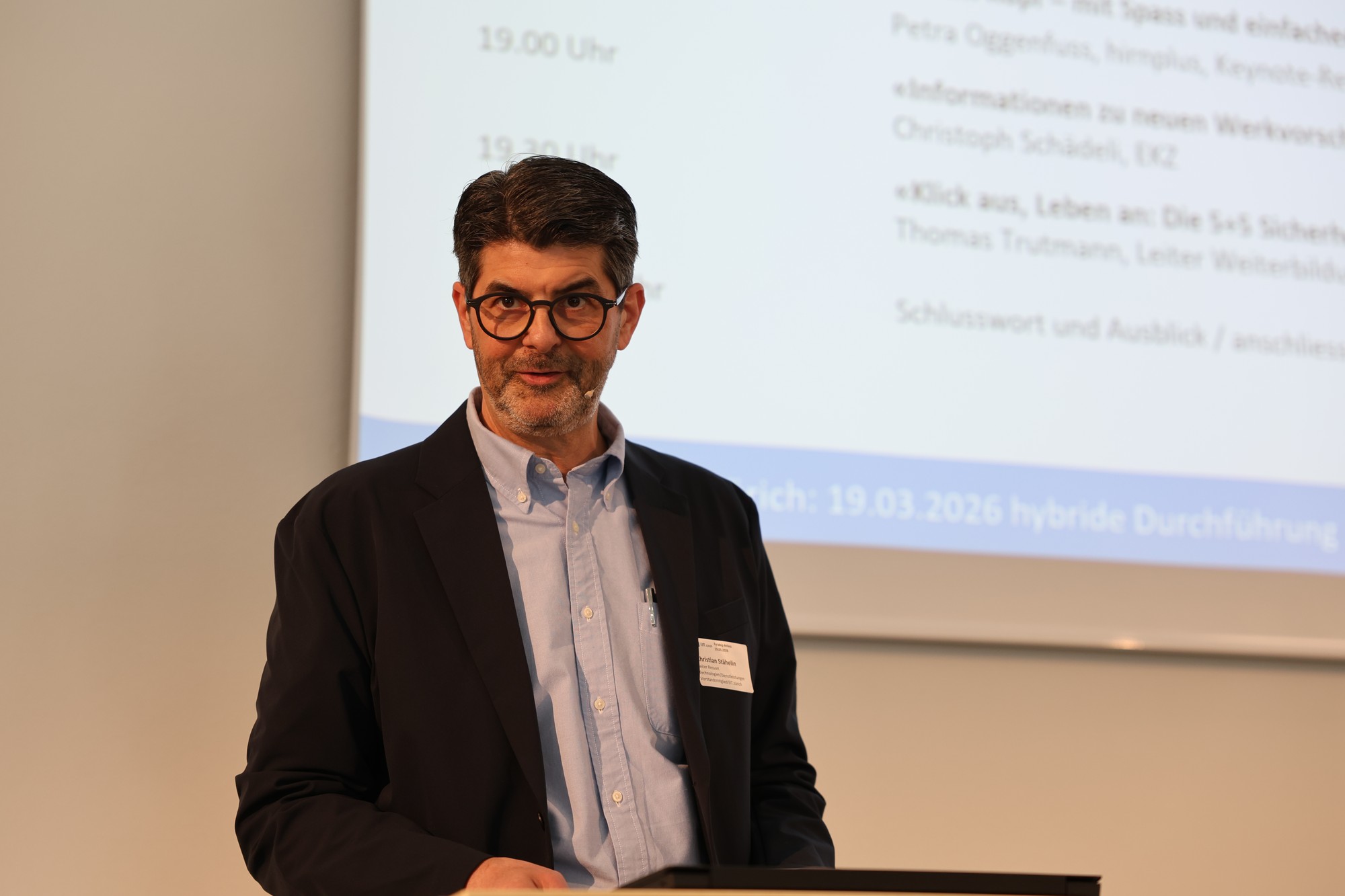 Christian Stähelin, Vorstandsmitglied EIT.zürich und Leiter Ressort Technologien/Dienstleistungen, leitete erneut souverän durch den Abend und begrüsste die Teilnehmenden pünktlich um 16.30 Uhr.