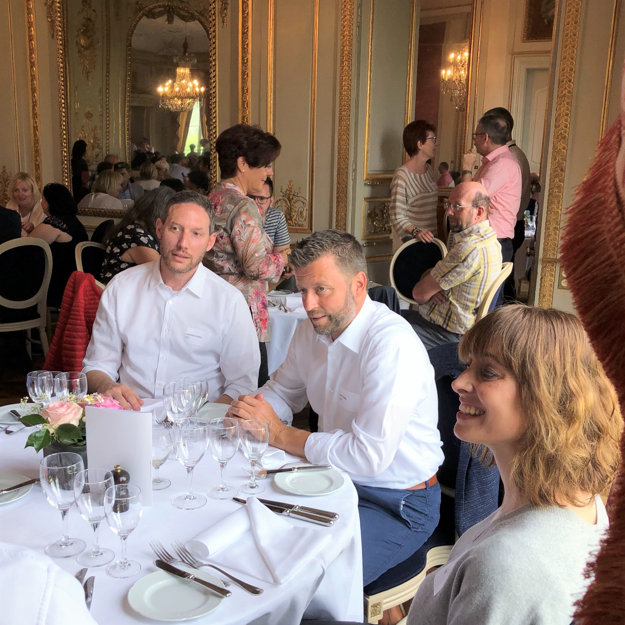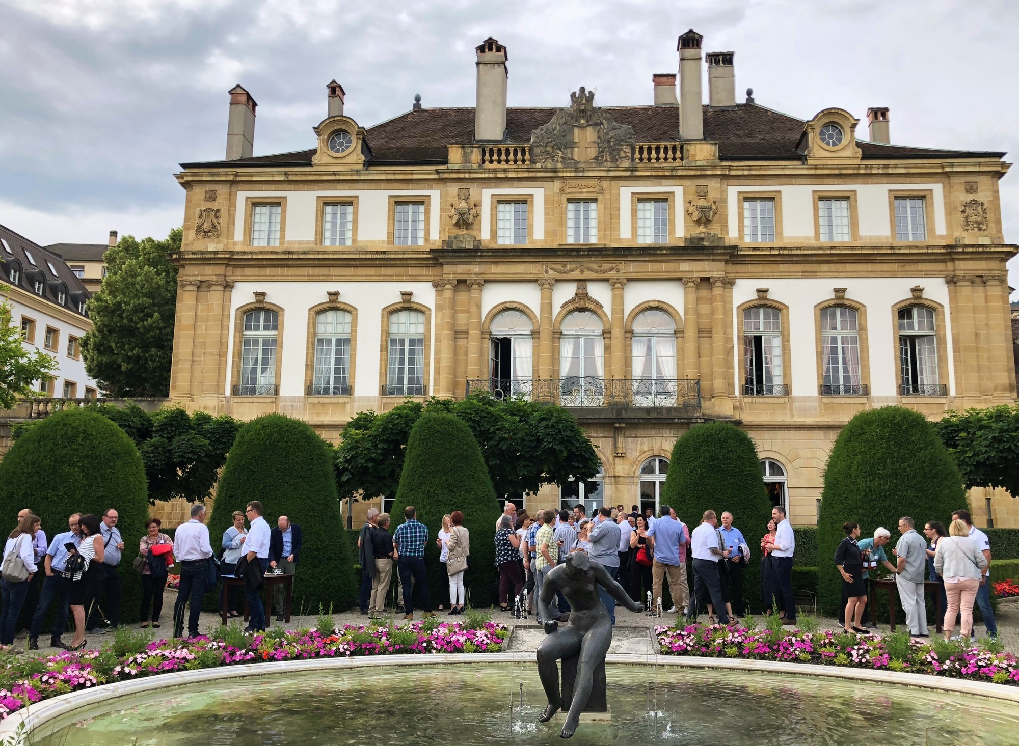 Nach individueller Anreise trafen sich die Teilnehmenden ab 18.00 Uhr im wunderschönen Schlosspark der ehem. barocken Schlossanlage von Pierre-Alexandre DuPeyrou. Nach herzlichen Begrüssungen untereinander stiessen die Teilnehmenden gemeinsam auf das Wochenende an. Anschliessend wurde in den Räumlichkeiten im ersten Stock ein exquisites Abendessen serviert. Bei vielseitigen Diskussionen, interessanten Gesprächen und dem ungezwungenen Austausch der Mitglieder klang der Abend gemütlich aus.