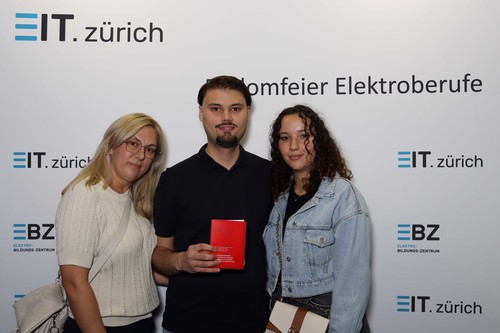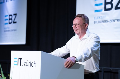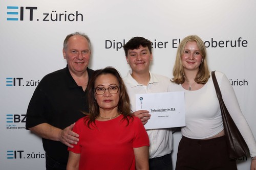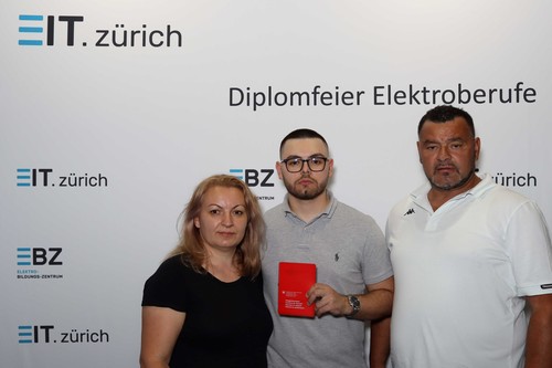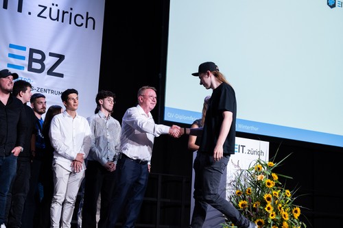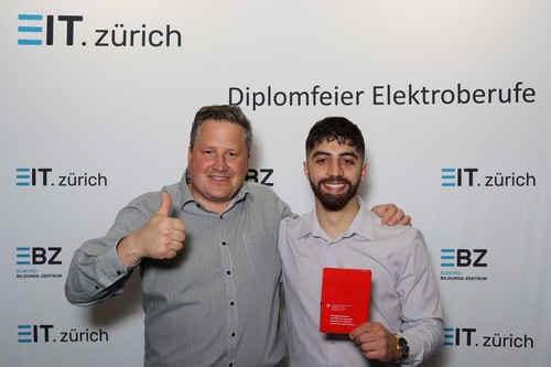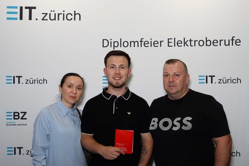 Darauf geht auch Silvan Lustenberger, Präsident EIT.zürich, in seiner Ansprache ein. Er freut sich mit den jungen Berufsleuten und weist auf das breite Angebot im Bereich der Weiterbildung hin. Er richtet motivierende Worte an alle, nach dem erreichten Zwischenstopp und einer wohlverdienten Pause, dranzubleiben. Weiter bedankt er sich bei allen Beteiligten, den Eltern, Lehrerinnen und Lehrern und den Mitgliedern der Prüfungskommission für den geleisteten Einsatz.