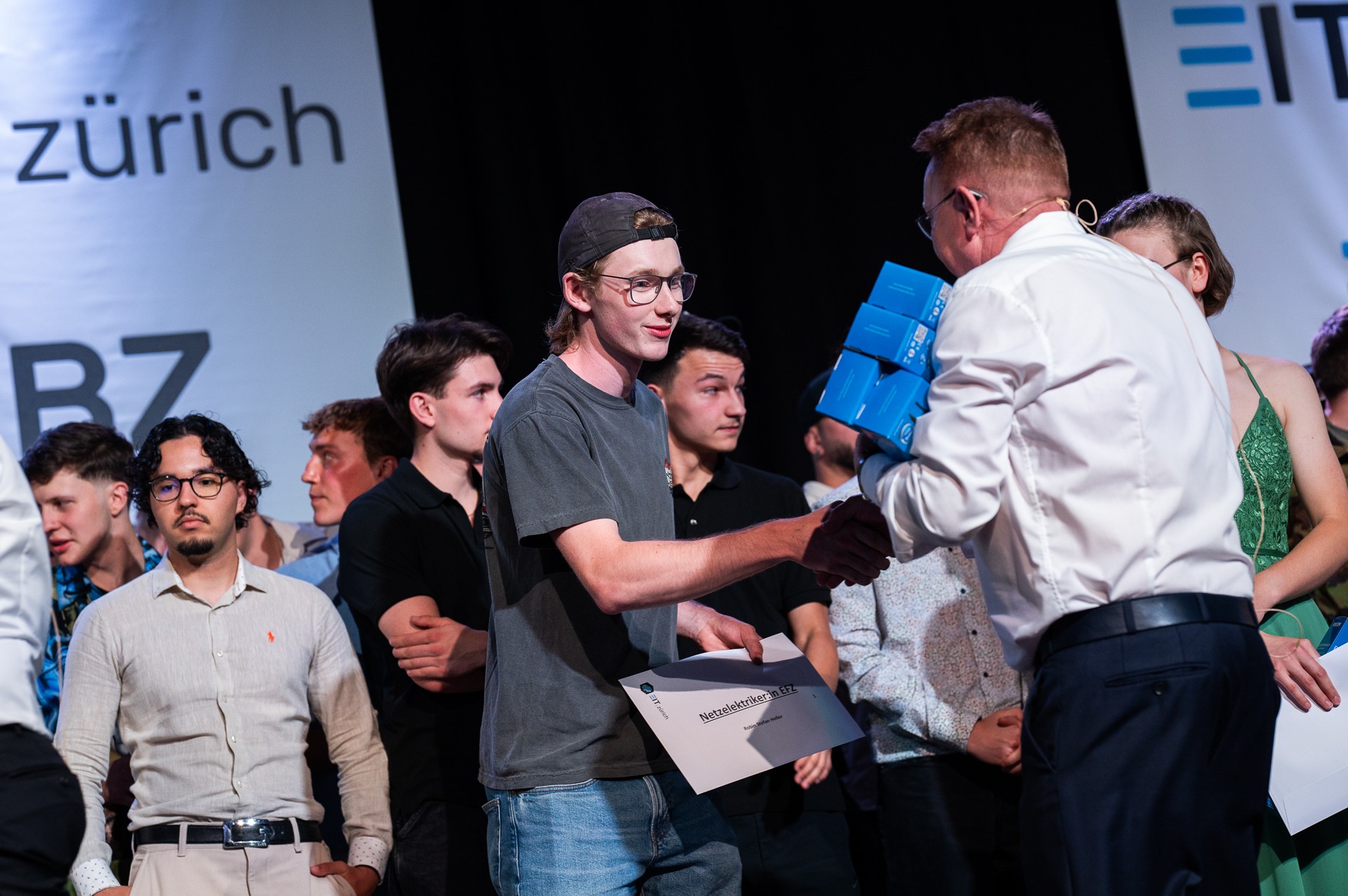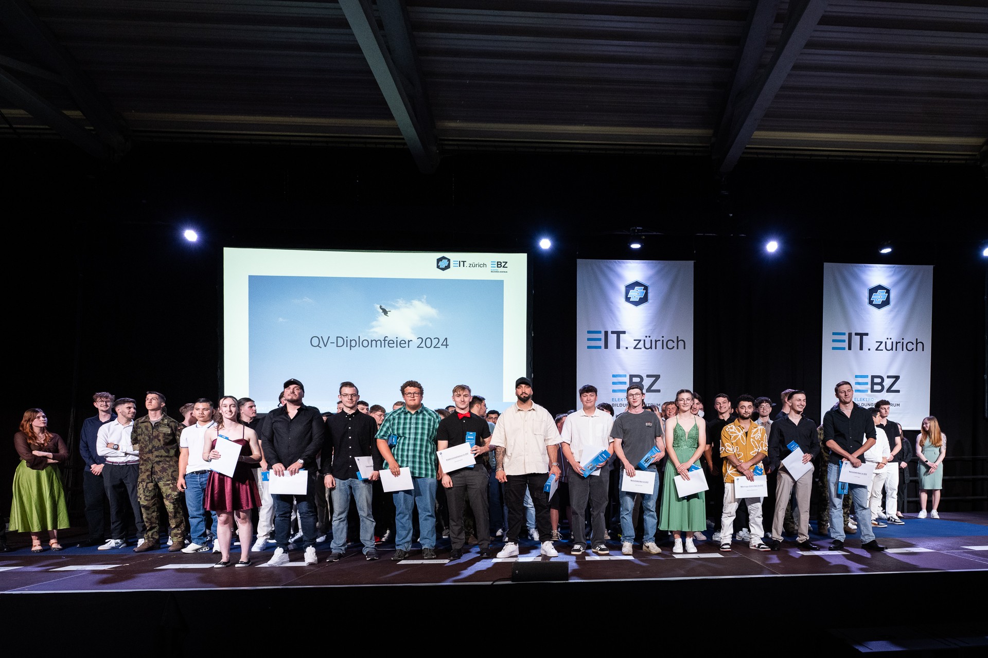 435 Kandidatinnen und Kandidaten nahmen am 4. Juli 2024 in den Eulachhallen in Winterthur ihr eidgenössisches Fähigkeitszeugnis zum/zur Elektroinstallateur/in, Montage-Elektriker/in, Telematiker/in oder Netzelektriker/in an der QV-Diplomfeier entgegen.