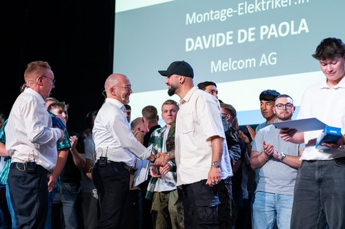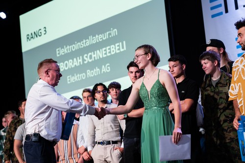Trotz einem Rücklauf der Erfolgsquote auf 84% ist Heinz Haag, Präsident der Prüfungskommission 12, zufrieden mit den erbrachten Leistungen. Besonders freut ihn, dass vermehrt auch Absolventinnen unter den Besten ausgezeichnet werden dürfen. Neben den Ehrungen der TOP 3 pro Beruf mit einem Gutschein für einen Helikopterrundflug wurden in diesem Jahr weitere attraktive Preise verlost. Linda Gwerder, Radio 1, durfte erneut eine Jahresnutzung eines Renault Megane E-Tech sowie 2 Übernachtungen in einem TOP 3 STAR HOTEL, 2 Übernachtungen im PEAKS PLACE in Laax, 1 Übernachtung in einem ZÜRICH CITY HOTEL und ein iPad Pro 11 (gesponsert von der Firma KABLAN AG) überreichen. Zum zweiten Mal führte Linda Gwerder mit Herzblut durch die Feier und trug dazu bei, dass die QV-Diplomfeier der Elektroberufe im Kanton Zürich in guter Erinnerung bleibt.