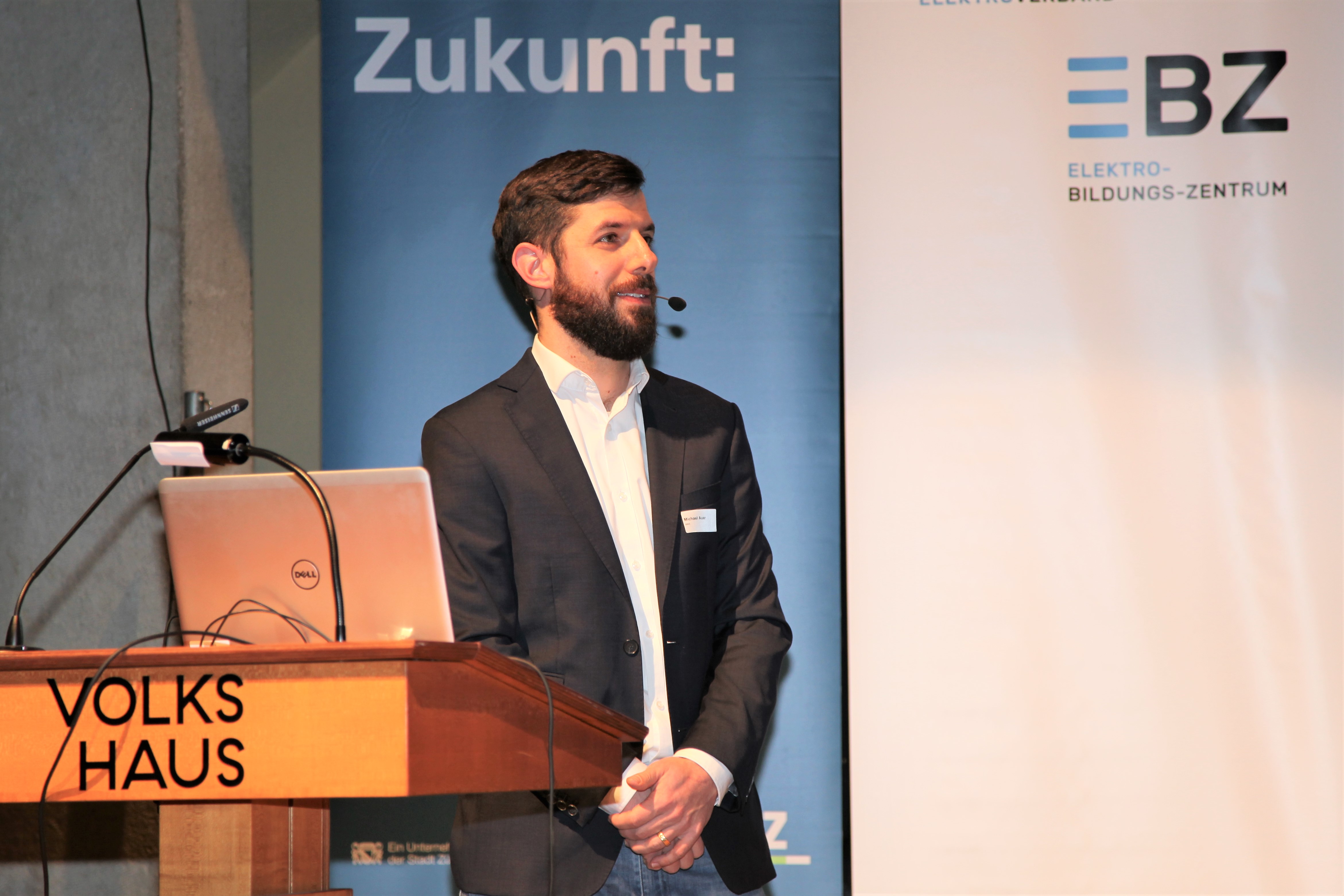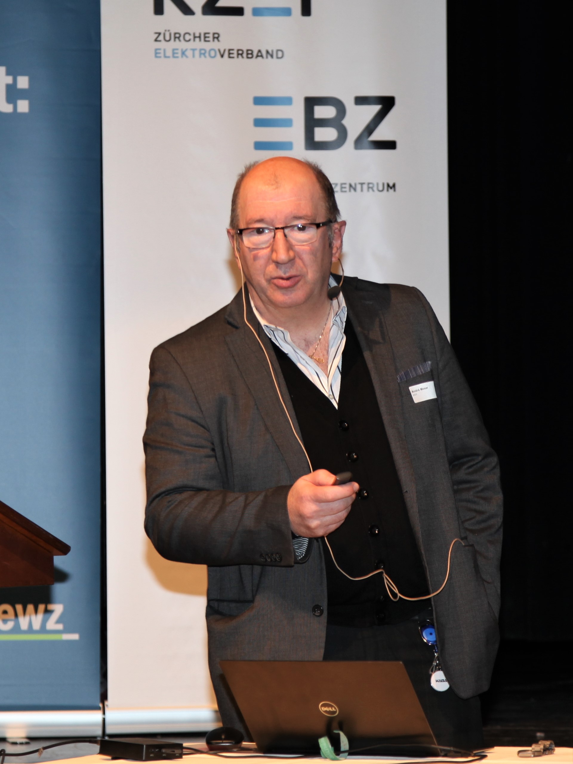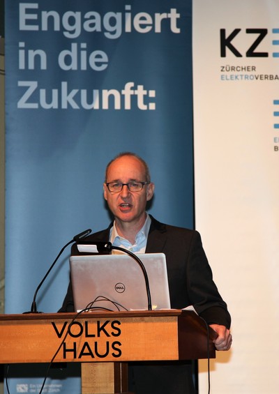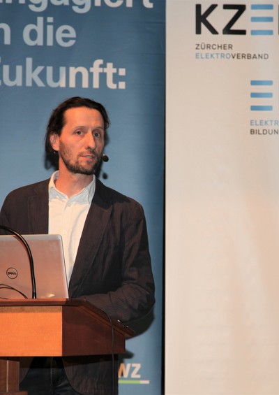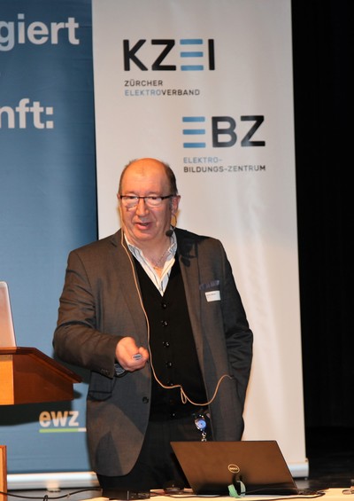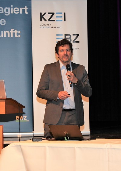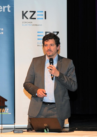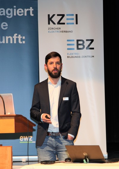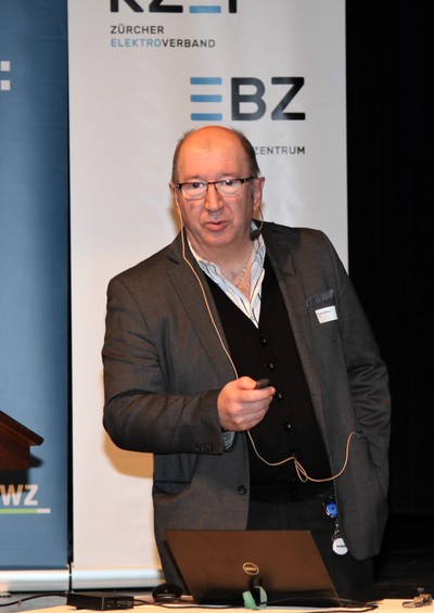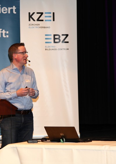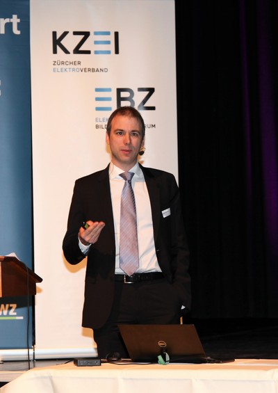 Eduard Sturny, Leiter Technik und Sicherheit des ewz, eröffnete die Tagung pünktlich um 13.30 Uhr und begrüsste die zahlreichen Teilnehmenden. Im Anschluss folgten die Vorträge von Benedikt Loepfe, ewz, zur Versorgungssicherheit in Zukunft sowie Informationen zur Technik und Sicherheit durch Eduard Sturny. Im Referat «Wie werde ich BIM ready?» erklärte Stefan Wüst, Bouygues E&S InTec Schweiz AG, die BIM-Methode und zeigte auf, wie man sich auf die Digitalisierung im Bauwesen vorbereitet. David Keller, Chefexperte Elektroinstallateure am Prüfungsort Effretikon, ging anschliessend auf die BiVo 2015 und Ihre Neuerungen ein. Als letzter Referent vor der Pause trat Richard Amstutz, ESTI, auf die Bühne und klärte die Teilnehmenden in seinem Vortrag über die rechtliche Seite eines Zusammenschlusses zum Eigenverbrauch auf.